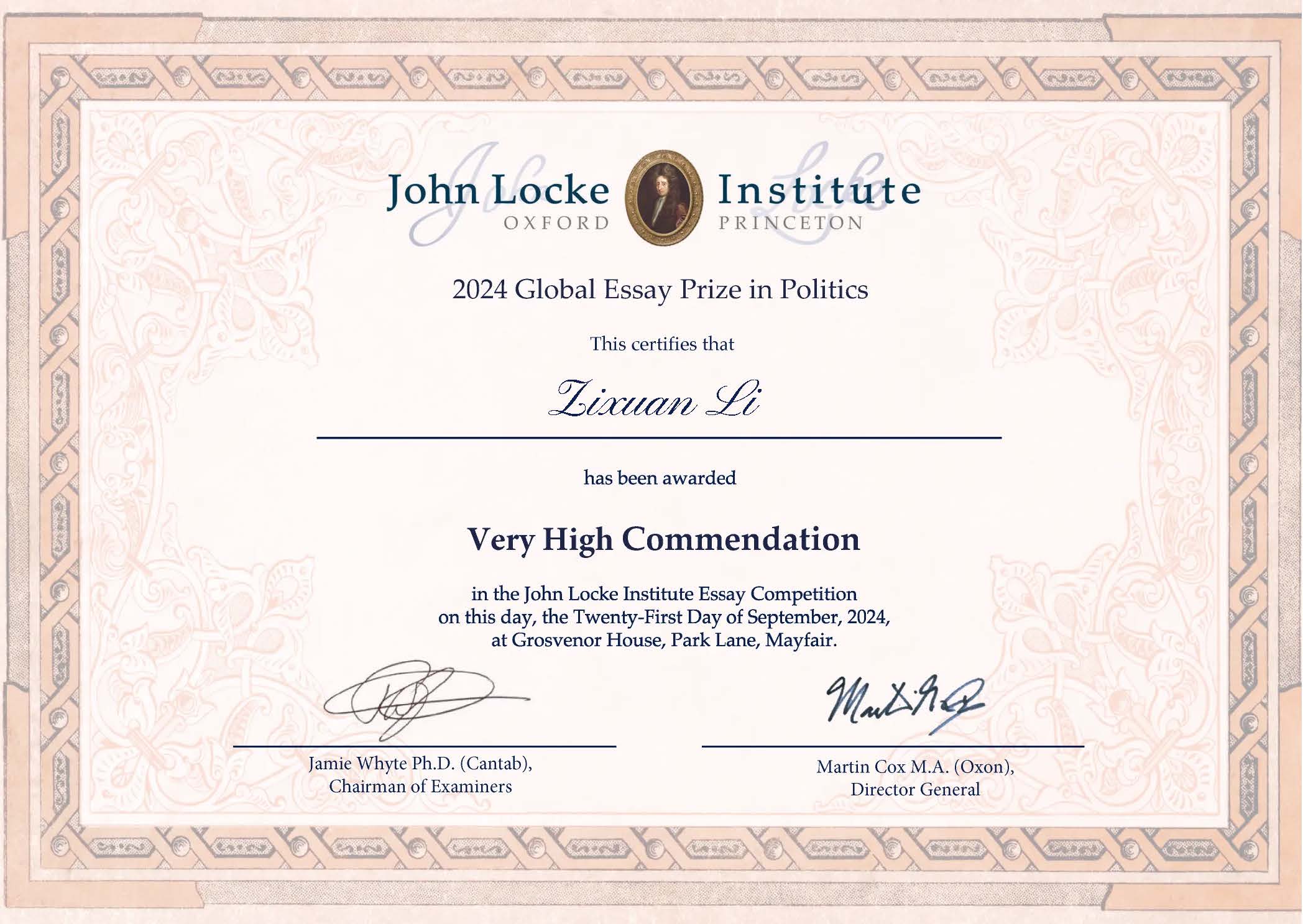Israeli-Palestinian Peace Issue (John Locke Essay Competition, very high distinction in Politics)